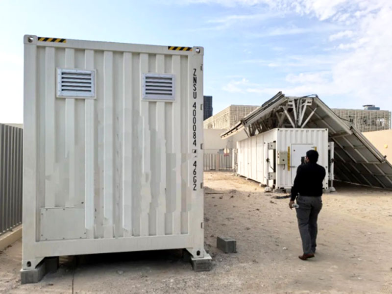 ظرف فتوولتائیک تاشو مجهز به ماژولهای دوطرفه شیشهای است که میتواند از هر دو طرف برق تولید کند و راندمان تولید برق را تا حد زیادی بهبود بخشد. در عین حال، سیستمهای ذخیرهسازی انرژی نیز میتوانند انرژی خورشیدی را به انرژی الکتریکی تبدیل کرده و آن را ذخیره کنند و از پایداری و قابلیت اطمینان منبع تغذیه اطمینان حاصل کنند.